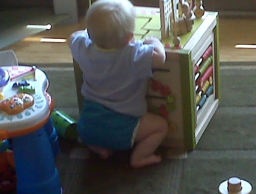 Today I went outside with Sam and Anika and moved a shrub from one spot to another. Sam sure was cranky! Was not happy with anything we were doing even though he ordinarily loves gardening. Being the cracker jack mom I am, I realized he was tired. Off to the swing we went to swing to sleep. He knew he was tired and asked for the "squeaky" swing since that is actually the one he can fall asleep in. The other one he would fall off of. Anyway, I popped him on and started swinging him. Took a while for me to find a good spot to stand as Anika was in the carrier on my back and I wanted her out of the sun but I needed to be able to push the swing. Finally, I find a good spot and get settled.